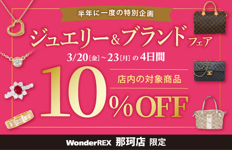 ワンダ―レックス 那珂店ではジュエリー・ブランドバッグの販売価格が10%OFF!
